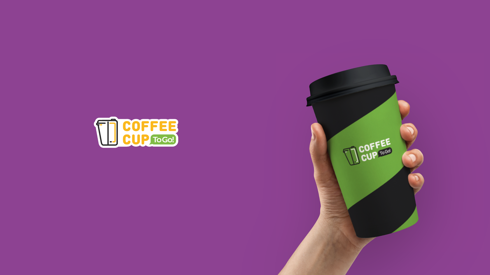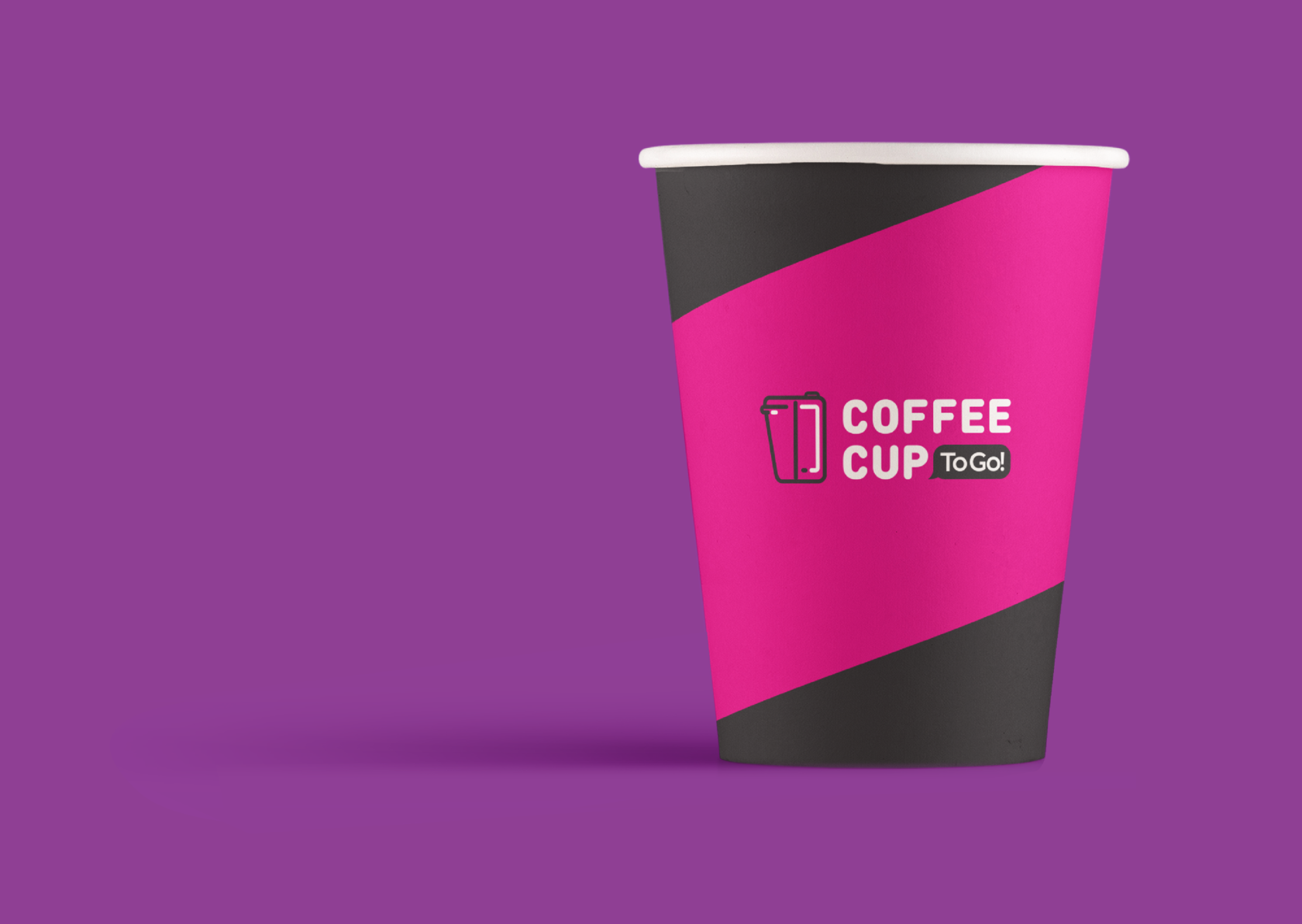 Single design in three colors for paper cups. Large — green; Medium-orange; Small-fuchsia.