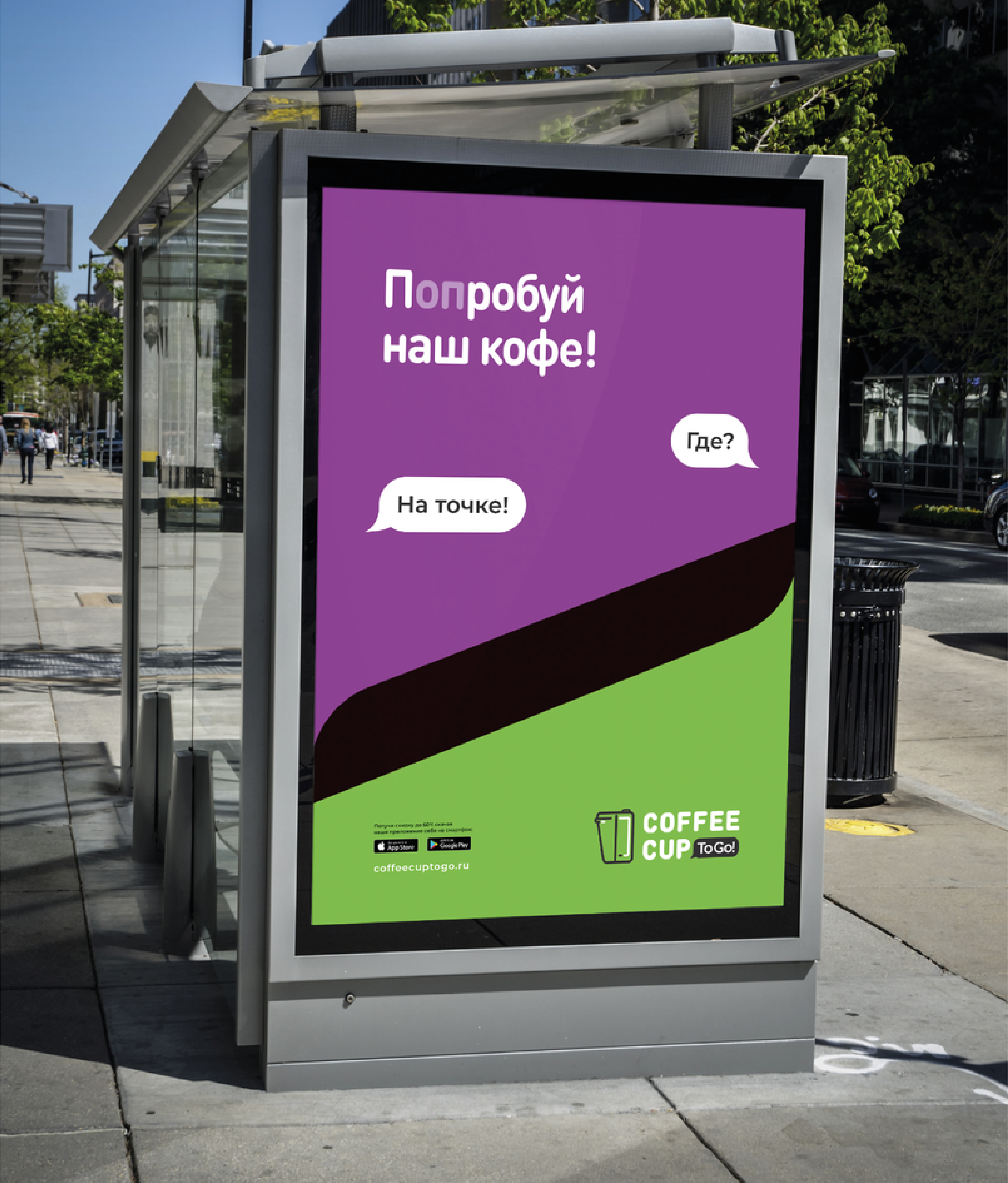 We tried to create not just an identification of a coffee chain, but a brand that speaks the same language with you. Simple playing headlines, the usual messages in messengers, create a sense of communication between the brand and its consumer, modern and active