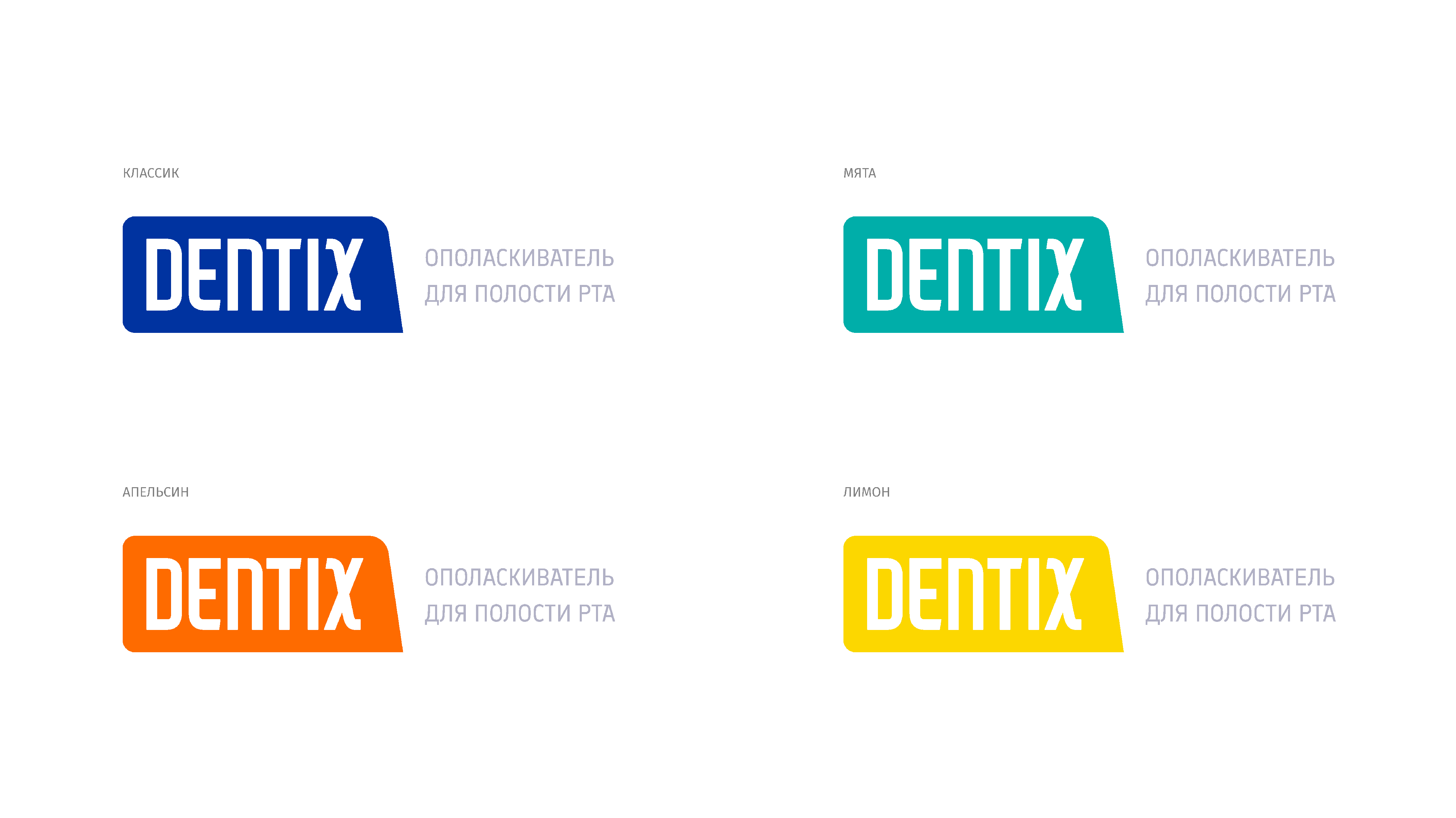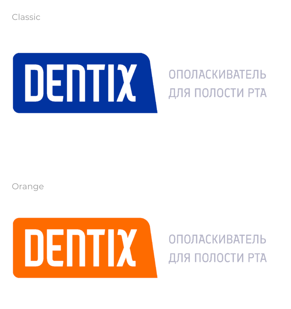 К каждому вкусу продукции Dentix присваивается свой цвет. Так потребителю легко будет определить и выбрать нужный вкус. Нельзя использовать полутона и другие оттенки цветов.